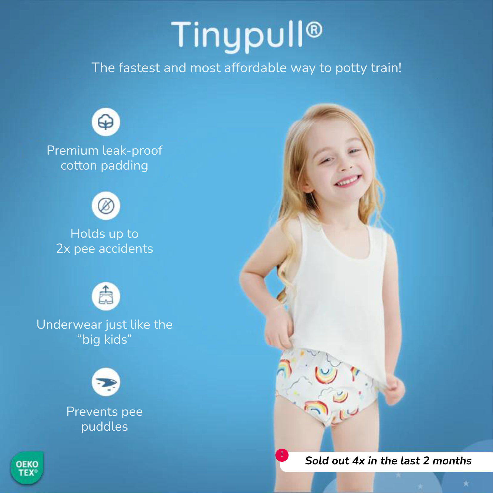We love our Tinypull® potty training underwear and are confident you'll love it too! That's why we offer a 60-day, risk-free guarantee. If you're not completely satisfied, we'll gladly refund your money in full, according to our Return & Refund Policy.